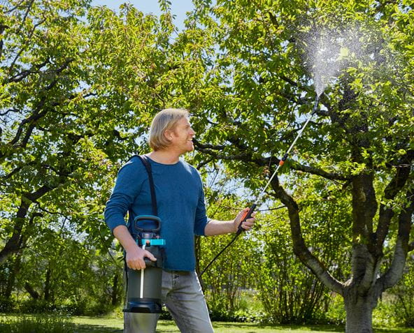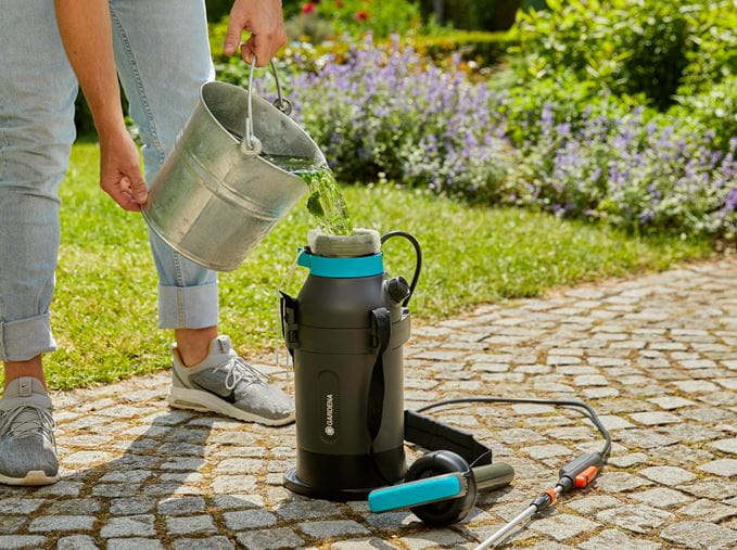 EasyPump opryskiwacz ciśnieniowy 5 l od GARDENA to idealne narzędzie do opryskiwania roślin zielnych i krzewów. Opryskiwacz zasilany jest przez wbudowany akumulator litowo-jonowy, umożliwiający opryskiwanie bez pompowania dzięki stałemu ciśnieniu wytwarzanemu w pojemniku. Dla ułatwienia napełniania, dozowania i opróżniania pięciolitrowego pojemnika, zastosowano drugi otwór z nakrętką dozującą. Podczas pracy opryskiwaczem akumulatorowym, użytkownik doceni jego ergonomię.