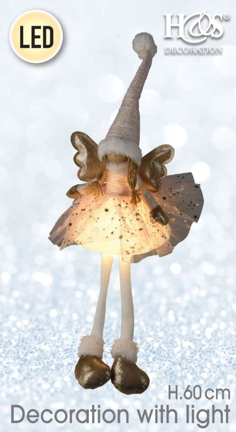 Urocza, duża figurka w kształcie aniołka o wysokości aż 60 cm świeci delikatnym światłem, kóre wprowadza przytulną atmosferę do każdego wnętrza. Jasna kolorystyka i światełka LED tworzą magiczny bożonarodzeniowy dodatek, który uzupełni świąteczny wystrój. Możesz wykorzystać jedną figurkę lub stworzyć kompozycję złożoną z kilku sztuk, aby stworzyć unikalną bożonarodzeniową aranżację.