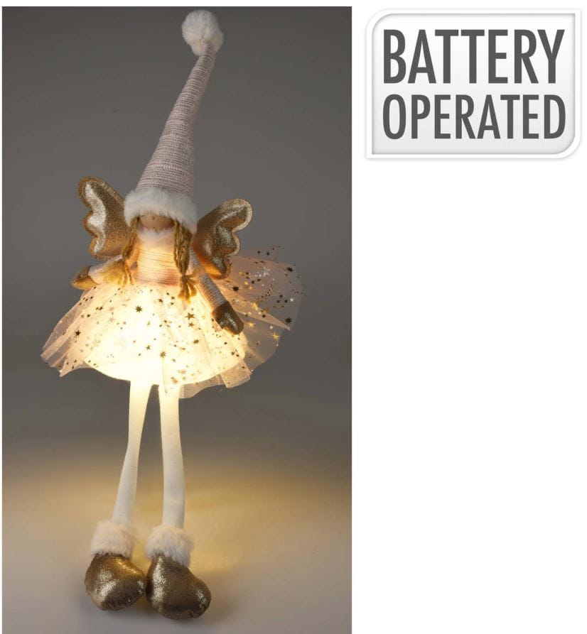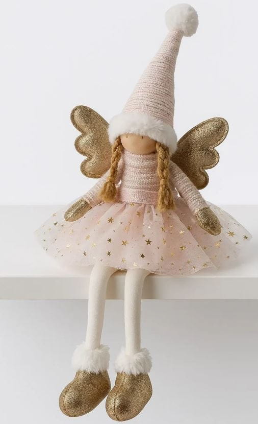 Siedzący anioł w delikatnych, różowych odcieniach z oświetleniem LED, doda Twoim świątecznym dekoracjom marzycielskiego akcentu.