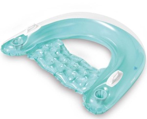 Dmuchany fotel plażowy z wygodnym oparciem, uchwytami oraz otworami na napoje. Nowoczesny design i ergonomia zapewniają komfort wypoczynku i świetną zabawę. Fotel został wykonany z wysokiej jakości wytrzymałego winylu PVC 0.25 mm i posiada dwie komory powietrzne. W zestawie znajduje się łatka naprawcza, którą w razie potrzeby można naprawić drobne uszkodzenie.