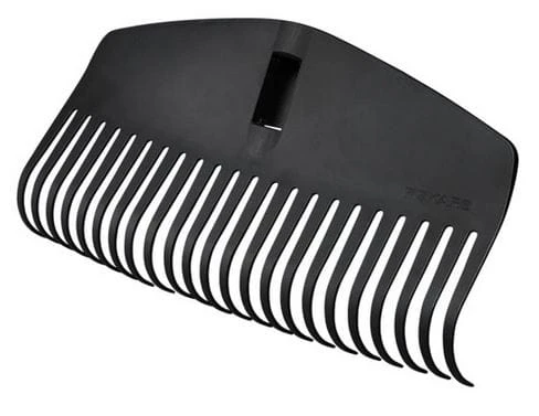 - Zakrzywione zęby ograniczają gromadzenie się liści, gałązek i gruzu podczas grabienia.