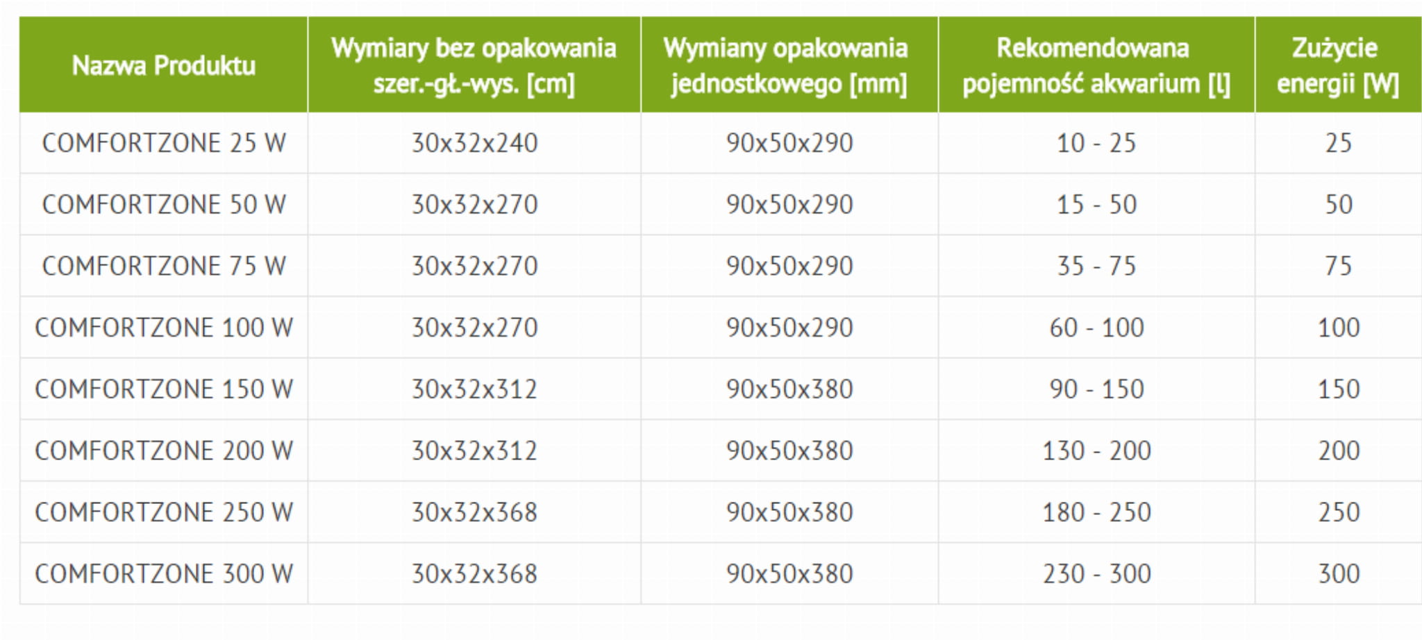 Grzałka COMFORTZONE to sprawdzona i bezpieczna grzałka szklana, która jest wyposażona w precyzyjny termostat z elektronicznym wspomaganiem. Umożliwia ustawienie pożądanej temperatury wody w zakresie od 18 do 32ºC. Wystarczy umieścić grzałkę w akwarium i podłączyć do sieci. Grzałka COMFORTZONE automatycznie włącza się i wyłącza, i utrzymuje temperaturę wody w zakresie ±1ºC od temperatury ustawionej.