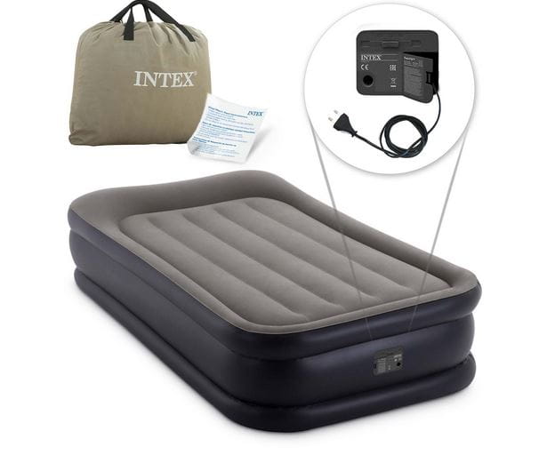 Materac posiada wbudowaną pompkę elektryczną oraz łatkę naprawczą.