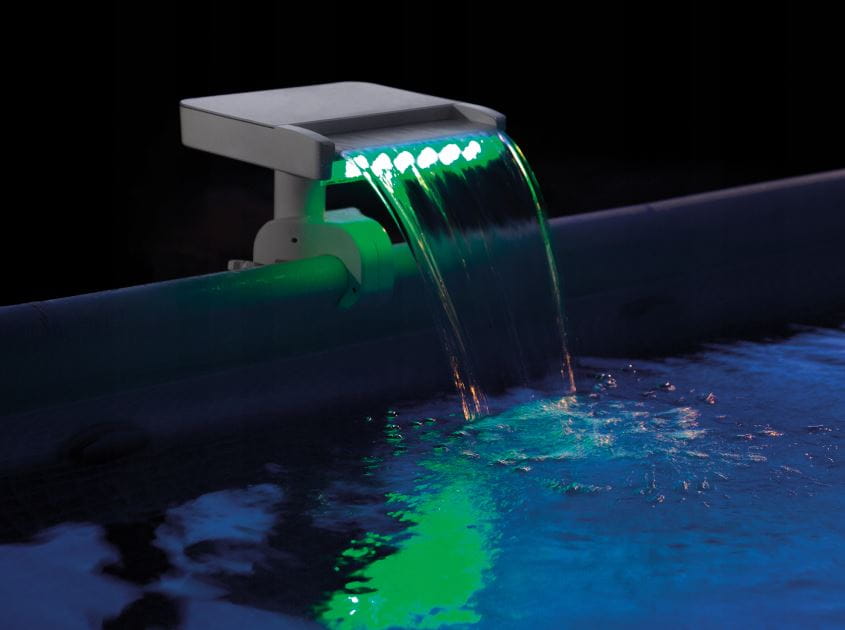 Multikolorowa kaskada LED stworzy idealny nastrój i atmosferę pod czas wypoczynku w basenie.