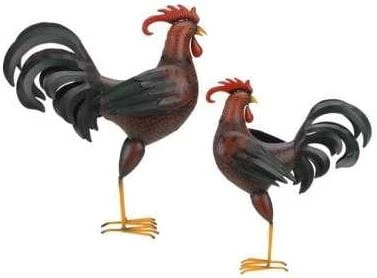 Figurka ogrodowa stojąca w kształcie koguta.