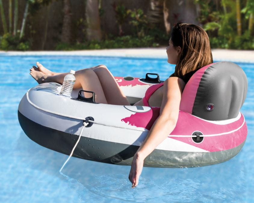 Bardzo solidne i wygodne koło do pływania posiada 2 otwory na ulubione napoje i 2 uchwyty.