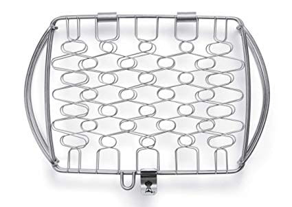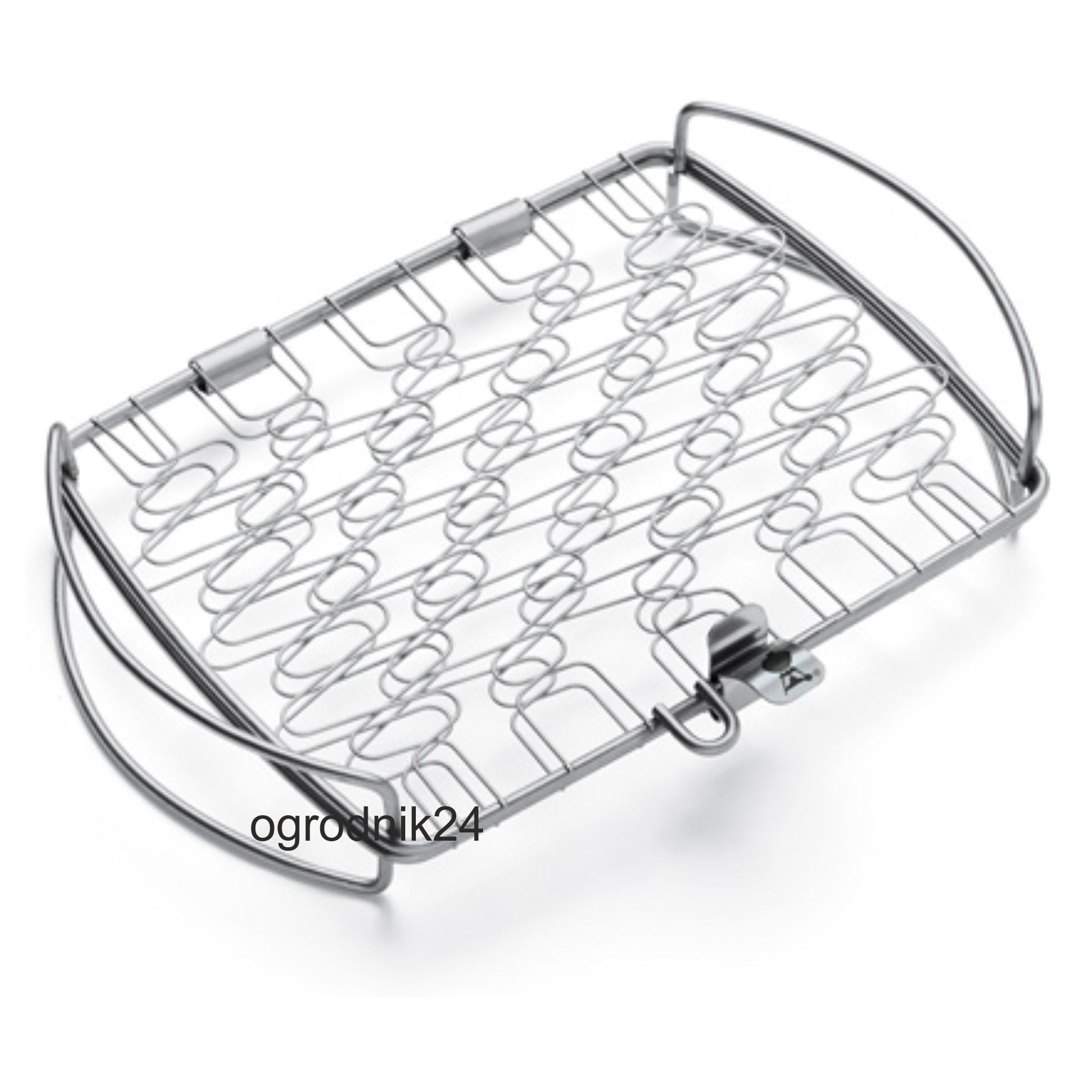 Mały kosz do grillowania ryb i warzyw marki Weber wykonany jest ze stali nierdzewnej. Pomiędzy dwoma jego ramami znajdują się elastyczne siatki, które łatwo przystosowują się do kształtu umieszczonej pomiędzy nimi ryby lub innej potrawy, dzięki czemu można bez problemu grillować nawet stosunkowo niewielkie i delikatne potrawy. W ten sposób możesz układać na grillu oraz zdejmować z niego przyrządzane jedzenie, a delikatniejsze kawałki (takie jak ryby) nie rozpadną się. Kosz jest szczególnie polecany do grilli gazowych Weber do grilli węglowych Smokey Joe oraz innych, większych grilli.