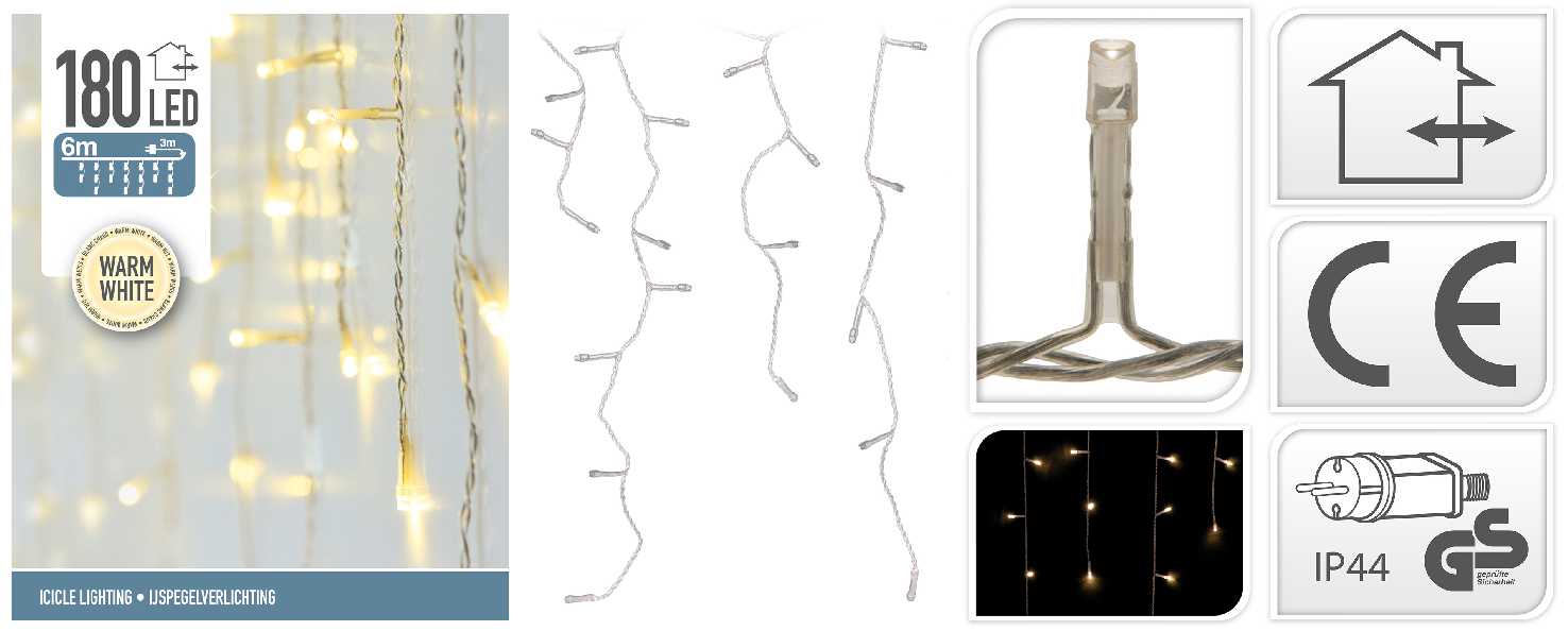 Kurtyna led zewnętrzna biała ciepła 180 L 6m 259490