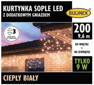 Kurtyna sople 200 LED lampki białe zewnętrzne 9,6m 13-578