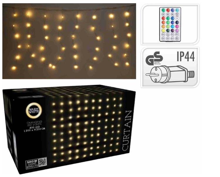 Kurtyna świetlna z pilotem 400 led biały ciepły 232104
