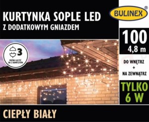Kurtyna zewnętrzna biała ciepła sople 100 LED + gniazdo 13-558