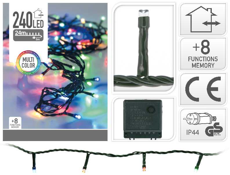 Lampki choinkowe kolorowe 240 LED migające 24m 259766
