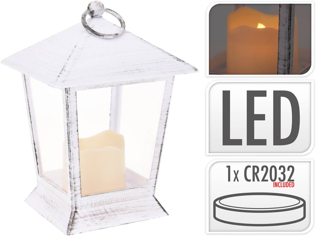 Latarnia ze świecą na baterie lampion plastikowy biała 688597