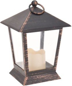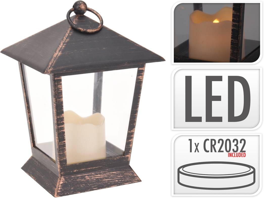 Latarnia ze świecą na baterie lampion plastikowy miedź 688566