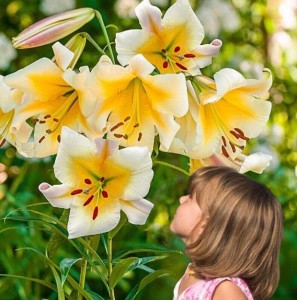 Już same liście lilii wyglądają niezmiernie dekoracyjnie, jednak najbardziej efektownie wygląda w okresie kwitnienia, czyli od czerwca do lipca. Pojawiają się wtedy na długich pędach kwiatowych biało-żółte, duże kwiaty, których średnica wynosi około 25cm. Charakteryzują się one bardzo mocnym, intensywnym zapachem.