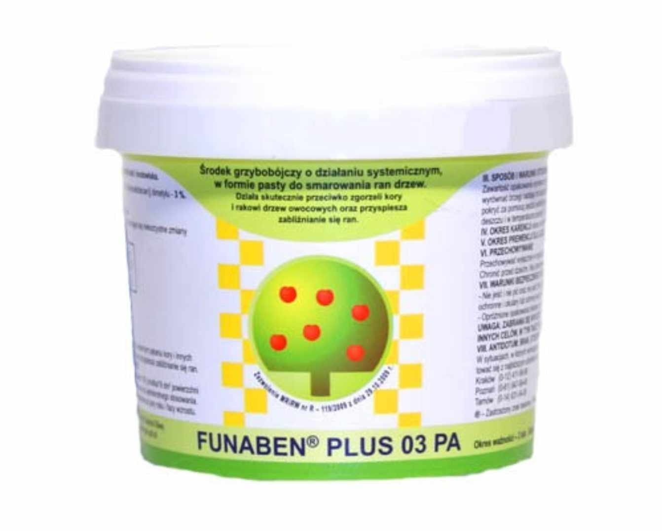Sprawdzony preparat w formie pasty do bezpośredniego malowania ran drzew skutecznie zwalczający zgorzel kory, leukostomozę i raka drzew owocowych. FUNABEN 018 PA jest preparatem pozwalającym przez cały rok dbać o doskonałą kondycję roślin. Specjalnie dobrana formulacja oparta na sprawdzonej substancji grzybobójczej zwalcza fitopatogeny drzew i znacznie przyśpiesza zabliźnianie się ran powstałych po wszelkiego rodzaju cięciach, wiosennym pękaniu kory i innych uszkodzeniach mechanicznych. Pasta przeznaczona jest do stosowania w sadach, ogrodach działkowych i przydomowych zarówno przez użytkowników profesjonalnych i nieprofesjonalnych. Działa systemiczne, co gwarantuje zabezpieczenie całej rośliny.