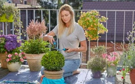 Używając matę do formowania krzewów GARDENA z łatwością posprzątasz resztki pozostałe po cięciu bukszpanu czy innych krzewów ozdobnych. Mata jest układana wokół donicy lub podstawy rośliny. Ścinki są zbierane na macie, z której następnie można je szybko i łatwo usunąć. Mata jest wykonana z materiału, który nie przyjmuje wilgoci, jest łatwa w czyszczeniu i po użyciu można ją złożyć oszczędzając miejsce do przechowywania.