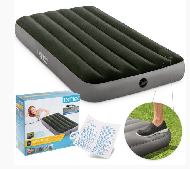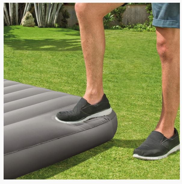 Materac dmuchany z wbudowaną pompką nożną to idealne rozwiązanie na dodatkowe łóżko dla niespodziewanych gości lub podczas wyjazdu na kemping.