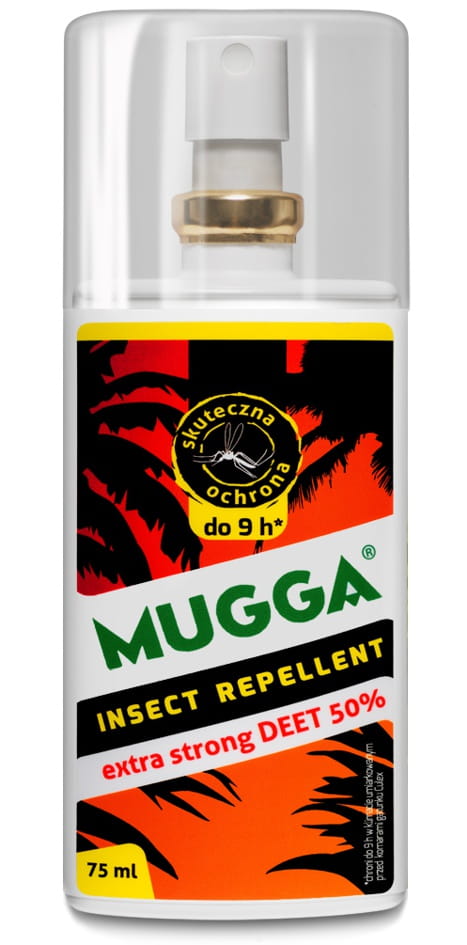 Najmocniejszy na Polskim rynku środek na komary tropikalne Mugga Spray 50 % extra strong.