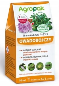 NeemAzal - T/S jest ekologicznym insektycydem pochodzenia naturalnego o szerokim spektrum działania, do zwalczania owadów ssących, gryzących oraz minujących, takich jak mszyca, ćma bukszpanowa, ziemiórki, wciornastki, a także stonka ziemniaczana w ochronie warzyw, drzew i krzewów owocowych oraz roślin ozdobnych. Substancję aktywną preparatu stanowi azadyrachtyna, pozyskiwana z nasion tropikalnego drzewa Neem – miodii indyjskiej. Preparat na roślinie wykazuje działanie wgłębne i powierzchniowe, a na zwalczanych organizmach żołądkowe. Aktywność owada ustaje w ciągu kilku godzin po spożyciu. Formy larwalne zaprzestają żerowania i zatrzymuje się ich rozwój. Ostatecznie po kilku dniach prowadzi to do ich śmierci. Formy dorosłe zaprzestają żerowania. Ograniczona zostaje ich płodność.