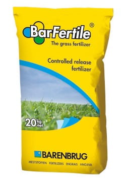 Barfertile zapewnia bardzo wysoką jakość darni, intensyfikuje zielony kolor, gęstość oraz ukorzenienie trawy, a także zapobiega wymywaniu składników pokarmowych. Dzięki 25% powlekanego azotu, trawa jest stymulowana do szybszego rozwoju, wspomaganego przez zawartość MgO i mikroelementy takie jak: B, Cu, Fe, Mn, Mo, Zn. Nawóz działa przez 2-3 miesiące po zastosowaniu, a jego formuła zawiera niską zawartość siarczanów i brak chlorków.