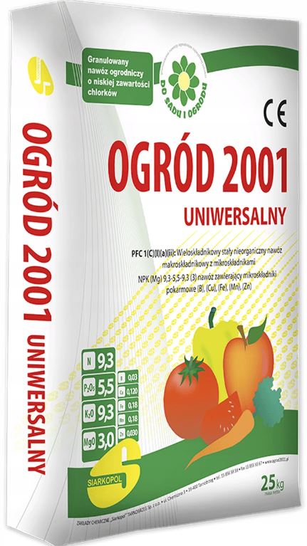 Odpowiednio zbilansowana zawartość makroelementów i mikroskładników pokarmowych w nawozie ma kluczowe znaczenie przy uprawie ziemi. Właściwe proporcje użytych w nim komponentów zapewniają prawidłowy wzrost roślin i zwiększają ich wydajności. Właśnie tak działa uniwersalny wieloskładnikowy nawóz OGRÓD 2001 o niskiej zawartości chlorków, równocześnie wzbogacony o potas w postaci siarczanowej. Posiada on wszystkie niezbędne składniki odżywcze, których zadaniem jest stymulować rozwój konkretnych roślin.