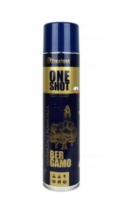 Odświeżacz powietrza w sprayu o zapachu Bergamo, to środek o podwójnym działaniu – odświeżacza powietrza i neutralizatora nieprzyjemnych zapachów. Zapach kojarzony z czystością, balsamem do ciała czy luksusowym mydłem. Określenie “One Shot” oznacza, iż wystarczy jedno przyciśnięcie „spustu”, aby świeży zapach rozszedł się po całym pomieszczeniu. Jest to silnie skoncentrowany aerozol, więc znakomicie nadaje się wszędzie tam, gdzie mamy do czynienia z większą powierzchnią użytkową.