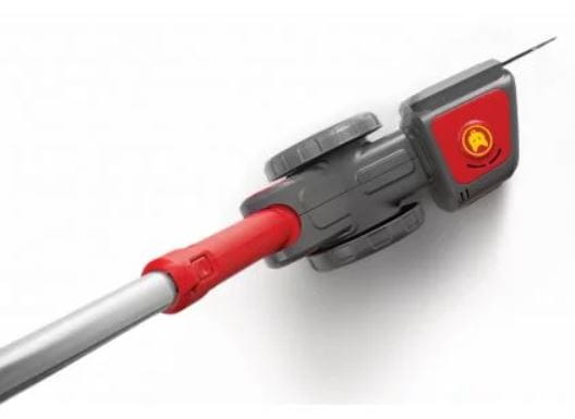 Nożyce akumulatorowe do trawy WOLF-Garten GS 10 eM są częścią linii e-multi-star, co oznacza łatwą pracę na wysięgniku z możliwością podłączenia innych końcówek. Dzięki podłączeniu nożyc do wysięgnika jesteśmy w stanie z łatwością pielęgnować krawędzie trawnika z pozycji stojącej. Wbudowane koła gwarantują szybszą oraz dużo wygodniejszą pracę podczas docinania krawędzi. Dzięki obrotowej głowicy roboczej jesteśmy w stanie ustawić kąt nachylenia nożyc do własnych potrzeb