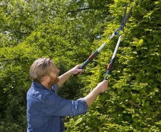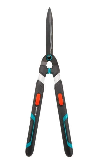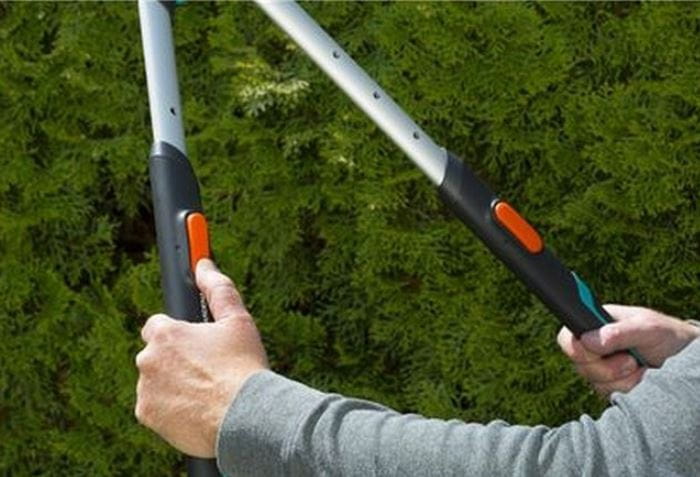 Nożyce do żywopłotu TeleCut od GARDENA robią wrażenie całą masą praktycznych funkcji. Dzięki teleskopowym, wydłużanym rękojeściom TeleCut zyskujesz 20 centymetrów zasięgu. Nie musisz już stawać na palcach czy wchodzić na drabinę. Wydłużenie rękojeści w żaden sposób nie zmniejsza siły cięcia. Ostrza mają falisty szlif, pozwalający bardziej precyzyjnie i skutecznie pracować na większych powierzchniach. Taki szlif zapobiega wyślizgiwaniu się liści i gałązek, które pozostają w miejscu cięcia. Antyadhezyjna powłoka sprawia, że nie przywierają one przy tym do ostrzy. Poza niezwykłą funkcjonalnością, nożyce TeleCut robią także wrażenie swoim komfortem. Rękojeści ErgoTec są niezwykle ergonomiczne, a przy tym zapewniają pewny chwyt. Znakomita amortyzacja niweluje wszelkie opory, które przeszkadzałyby w pracy, chroniąc przy tym stawy i dłonie, aby użytkownik nie czuł zmęczenia nawet po dłuższym czasie. Sprzyja temu także mały ciężar aluminiowych rękojeści.