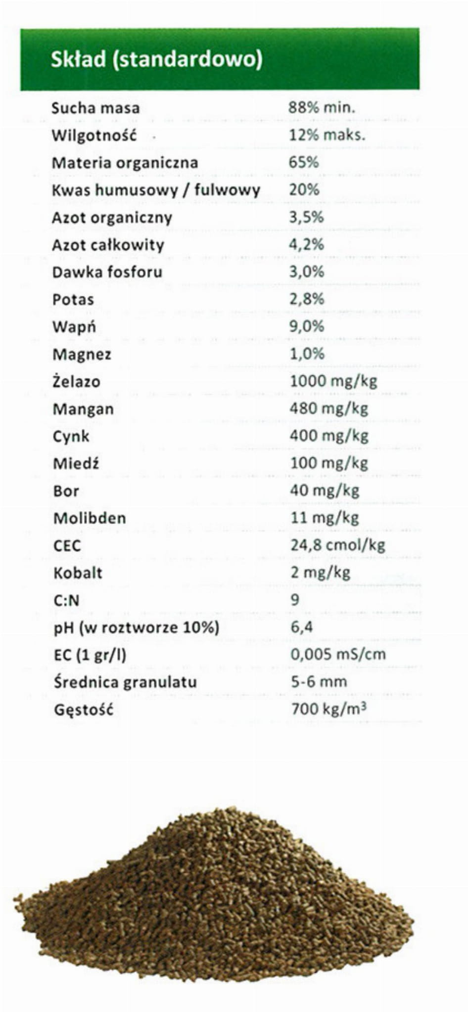 Nawóz organiczny, ekologiczny, higieniczny w formie granulatu.