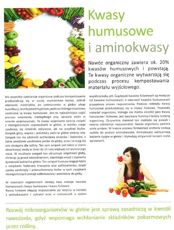 - skoncentrowany nawóz naturalny do wszystkich roślin domowych i ogrodowych. Wzbogacony pożytecznymi bakteriami glebowymi zwiększa żyzność gleby, wzrost roślin, kwitnienie, plonowanie owoców i warzyw.