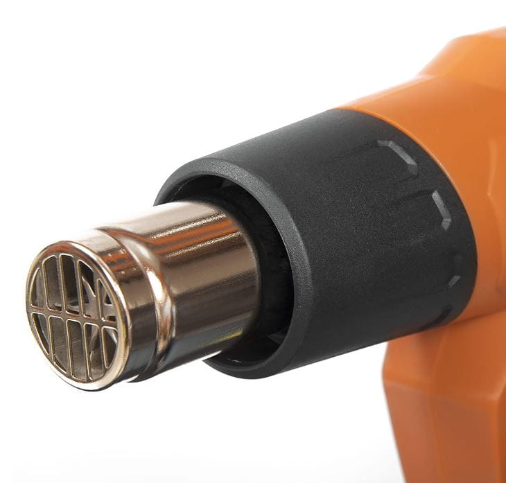 Opalarka elektryczna z wygodną rękojeścią zapewniającą komfort długotrwałej pracy. Chłodzenie narzędzia odbywa się poprzez zwiększone otwory. Model ma możliwość pracy w 2 trybach. Ergonomiczny przełącznik pozwala na szybką zmianę temperatury i siły nadmuchu. W zestawie z opalarką znajdują się 4 dysze.