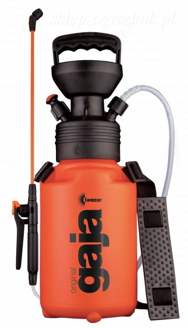 Opryskiwacz Gaja to najmniejszy opryskiwacz ciśnieniowy produkcji firmy Kwazar, wyposażony w lancę 32 cm. Ma praktyczny, wbudowany w głowicę lejek,
