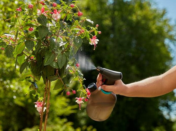 Opryskiwacz 1 l od GARDENA ma kilka funkcji, które znacznie ułatwią Ci nawadnianie kwiatów i innych roślin w domu i w ogrodzie. Tym, co od razu rzuca się w oczy, jest drugi otwór z nakrętką dozującą, pozwalającą opryskiwaczowi łączyć 3 funkcje w 1. Otwór ten umożliwia nie tylko uzupełnianie wody, ale także prawidłowe dozowanie nawozów, a także opróżnianie opryskiwacza. Nie ma potrzeby odkręcania głowicy z pompą, dzięki czemu użytkownik nie moczy sobie rąk. Każde przyciśnięcie uchwytu podczas pracy opryskiwaczem wytwarza równomierny, daleki strumień wody.
