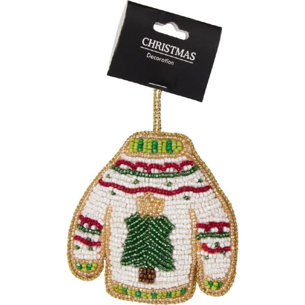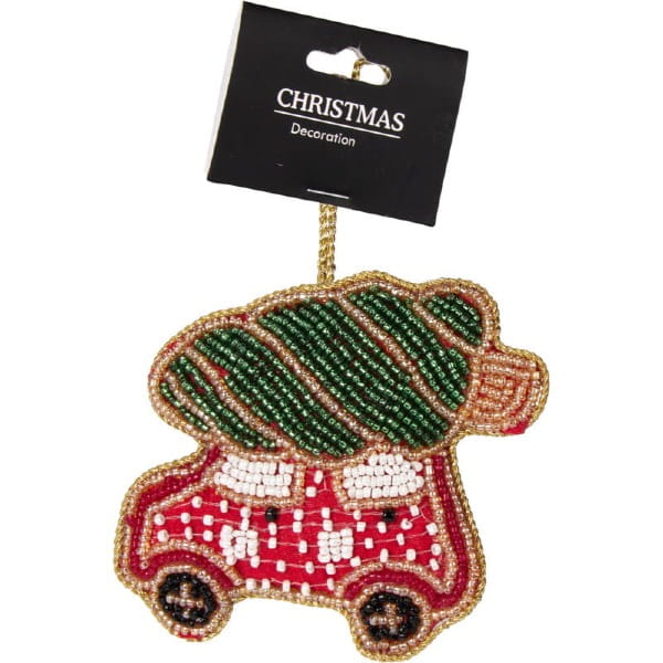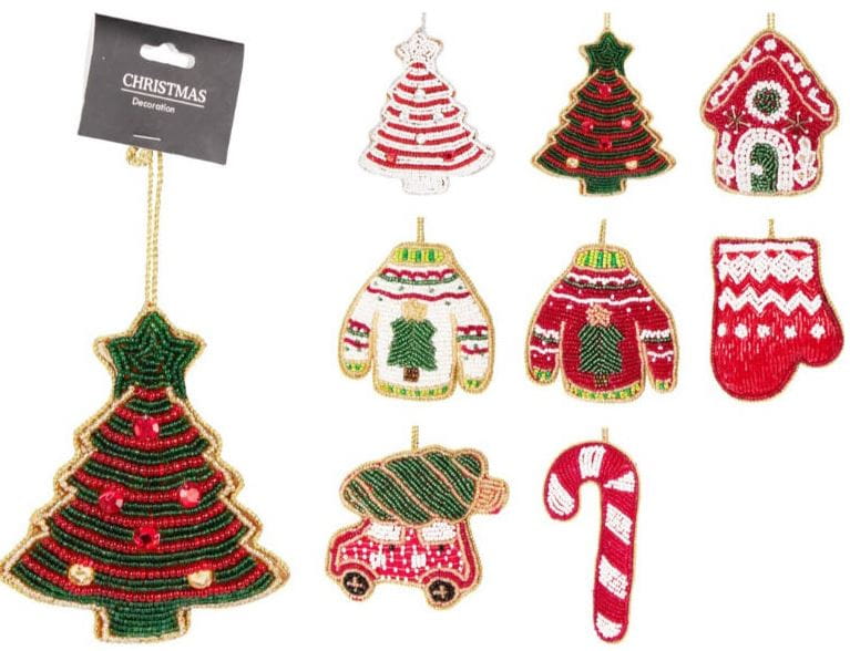 Dodaj odrobinę ręcznie robionej elegancji do swoich świątecznych dekoracji dzięki tej haftowanej ozdobie świątecznej . Ta ozdoba o wysokości 10 cm kunsztownie łączy lśniące szklane koraliki i cekiny, aby uchwycić światło i ducha Bożego Narodzenia. Jej lekka konstrukcja umożliwia łatwe zawieszenie na dowolnej gałązce choinki lub girlandzie.
