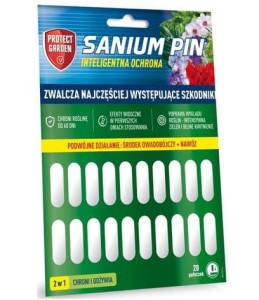 Sanium PIN to preparat 2 w 1, łączący działanie na szkodniki z nawozem, w postaci pałeczek doglebowych, do stosowania na rośliny ozdobne wewnątrz pomieszczeń.