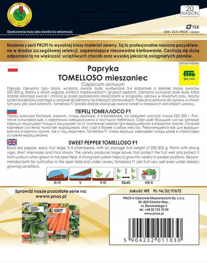 Papryka pod osłony Tomelloso typ block nasiona 5 g PNOS