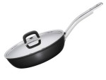 Patelnia głęboka Fiskars Functional Form do kuchenek gazowych posiada grube, aluminiowe dno, dzięki czemu nagrzewa się równomiernie i szybko, w wysokiej jakości, nieprzywieralna powłoka Hardtec ułatwia przygotowanie potraw. Rączka wykonana ze stali nierdzewnej nie ulegnie zniszczeniu podczas kontaktu z ogniem.