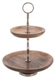 Parametry towaru: - dwupoziomowa - talerze wykonane z drewna - przeznaczony do kontaktu z żywnością - metalowy składany stelaż z uchwytem - idealne na ciasta, owoce, torty - średnica 30cm - wysokość całkowita ok 40cm
