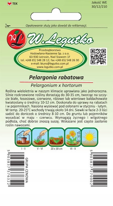 Pelargonia rabatowa F2 mieszanka nasiona 0,05 g Legutko