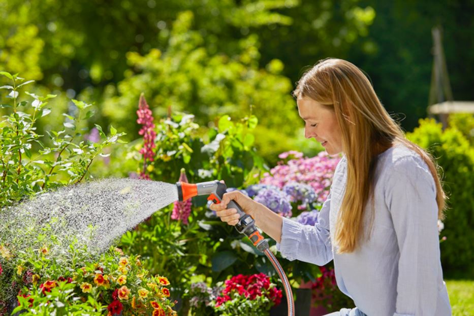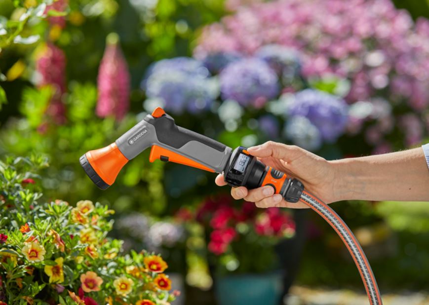 Pistolet zraszający AquaCount marki GARDENA zapewnia nie tylko niezawodne podlewanie roślin w doniczkach czy na rabatach, ale też kontrolę zużycia wody na bieżąco.