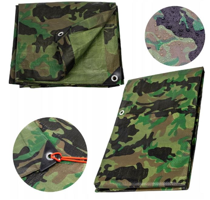 PLANDEKA MORO KAMUFLAŻOWA 3 x 3m WZMACNIANA PŁACHTA BIWAKOWA