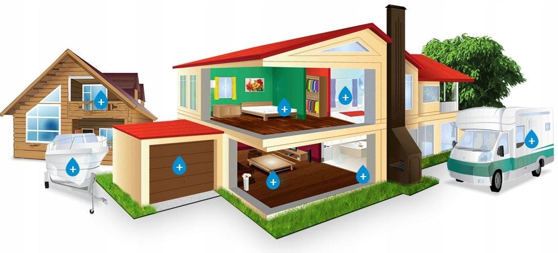 Domowy pochłaniacz wilgoci do mieszkania: kuchni, łazienki, toalety, piwnicy, garażu oraz do biura, przyczepy kempingowej, altany działkowej, łodzi i wszędzie tam gdzie występuje nadmierna wilgoć.