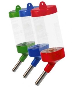 Poidełko wykonane z transparentnego tworzywa o pojemności 80 ml, przeznaczone do codziennego podawania wody królikom, chomikom lub innym zwierzętom.
