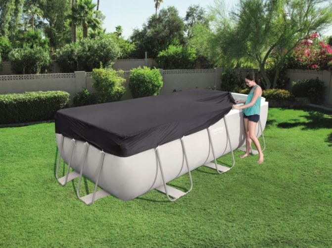 Pokrywa na basen Bestway wykonana została z zastosowaniem do basenów stelażowych prostokątnych o wymiarach 404 x 201 x 100 cm oraz