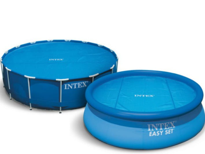 Folia solarna Intex przyspiesza nagrzewanie się wody w słoneczny dzień.