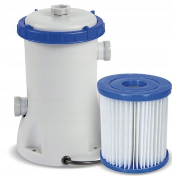- zestaw zawiera: pompę filtrującą, dakronowy filtr typu II (nr 58094), 2 węże do podłączenia, 4 klamry zaciskowe, sitka do basenu, instrukcję w języku polskim