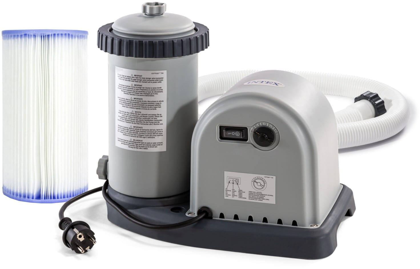 Pompa filtrująca pomaga w utrzymaniu czystej wody w basenie. Pompa filtruje z wydajnością 5678 litrów / godz.