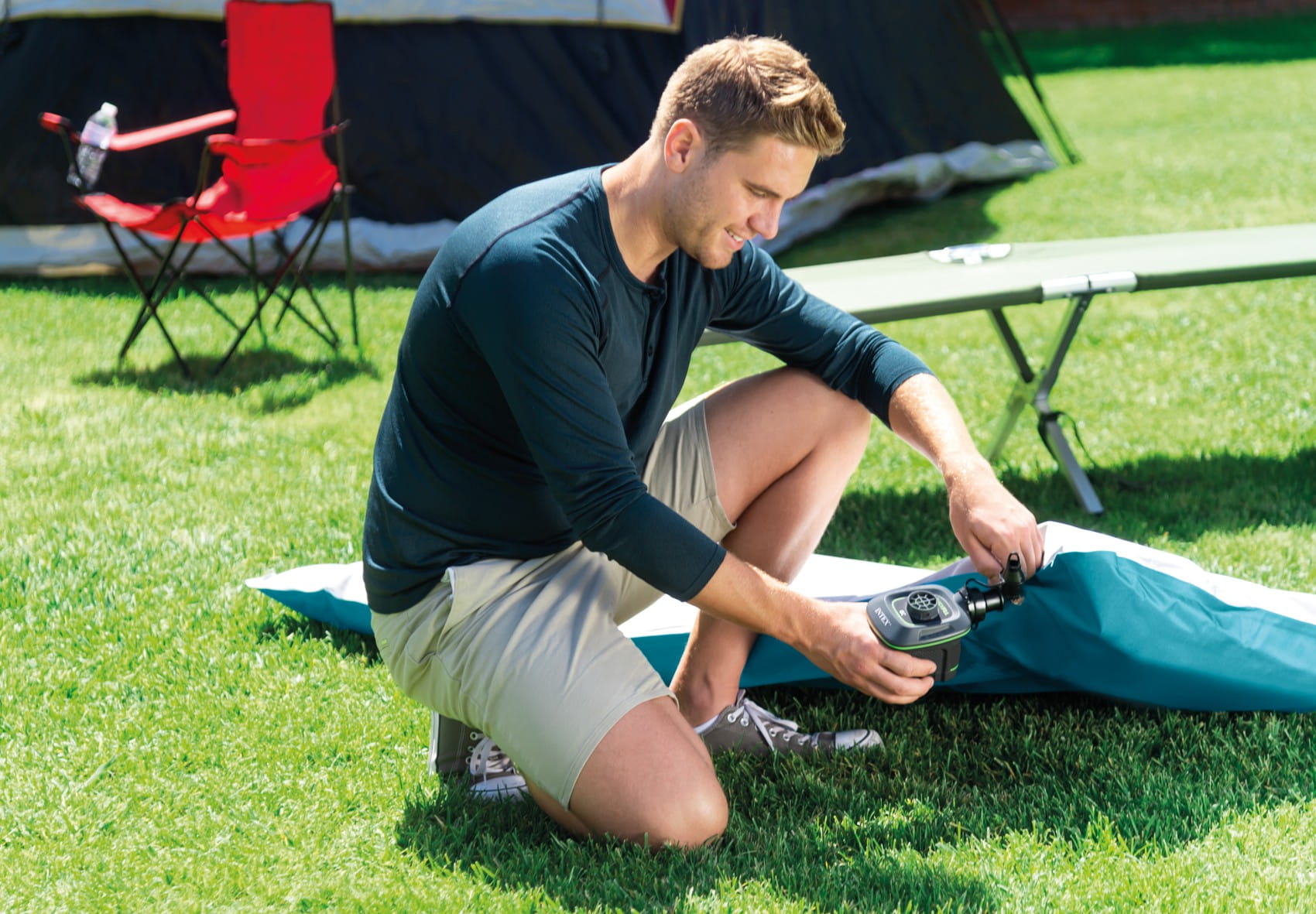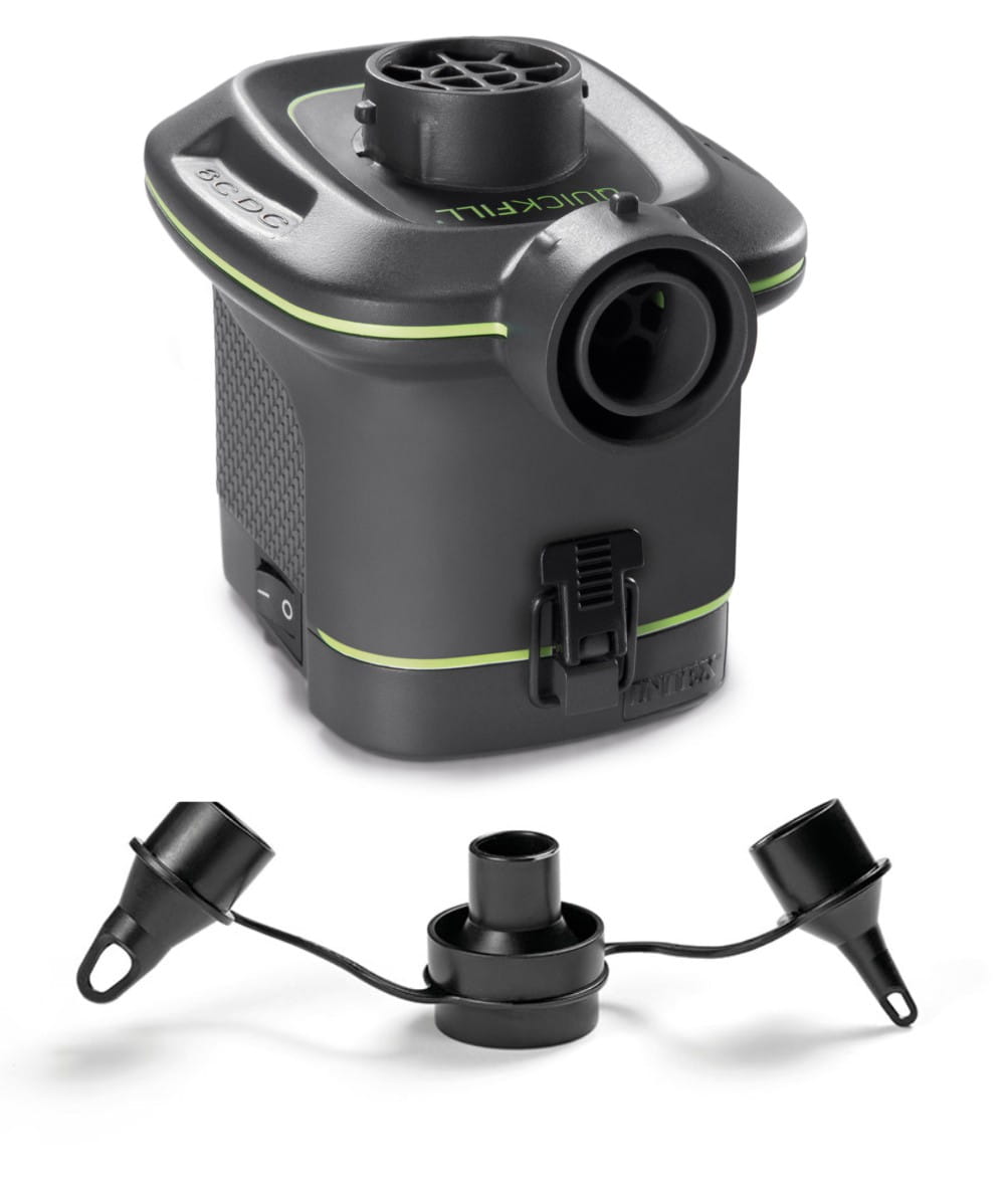 Pompka Quick Fill na baterie Intex jest niezwykle przydatnym urządzeniem podczas wyjazdów i w domu, kiedy nie ma dostępu do sieci elektrycznej, dzięki czemu nie trzeba się martwić, jak napompować ulubione dmuchane zabawki. W zestawie znajdują się 3 wymienne końcówki które pasują do wszystkich produktów dmuchanych.
