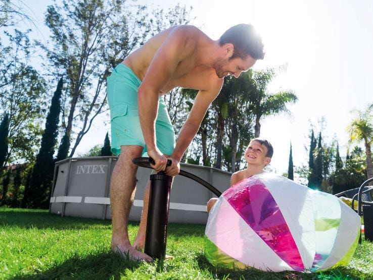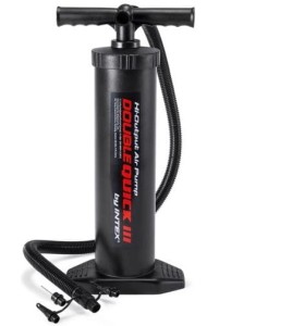 Pompka ręczna tłokowa Intex umożliwia podwójną wydajność, dzięki pompowaniu w czasie opuszczania tłoka jak i podnoszenia.